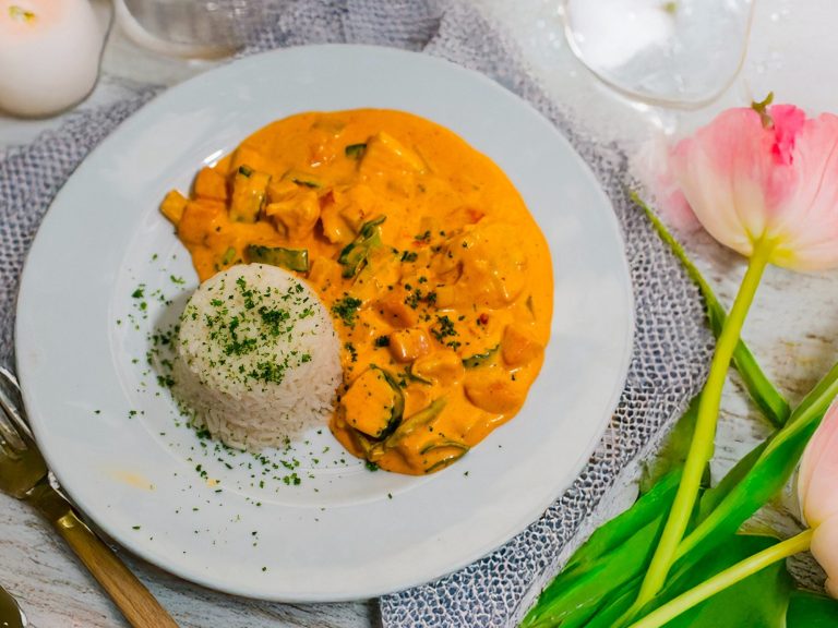 Schweinelende in Gorgon-Soße u. Tagliatelle