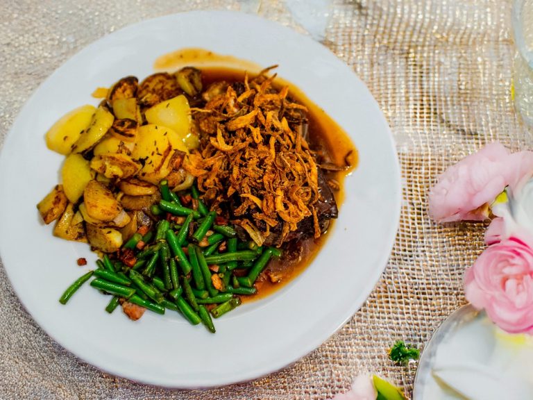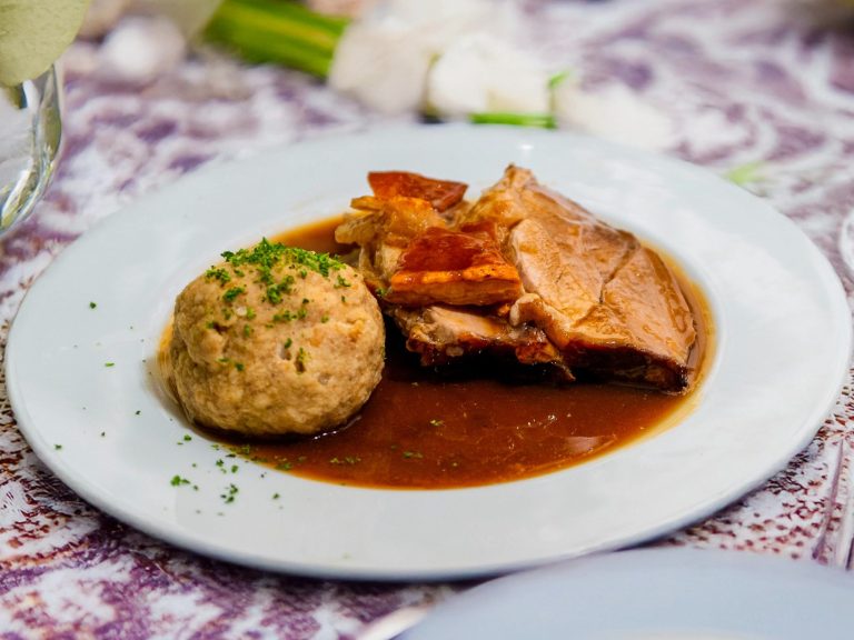 Sonntags: Schweinebraten mit Semmelknödel und Dunkelbiersoße